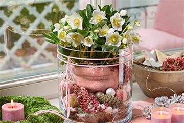 Christrosen kann man wunderbar in szene setzen, wenn man sie zusammen mit stacheldrahtpflanzen und farnen in schöne, schlichte kübel.