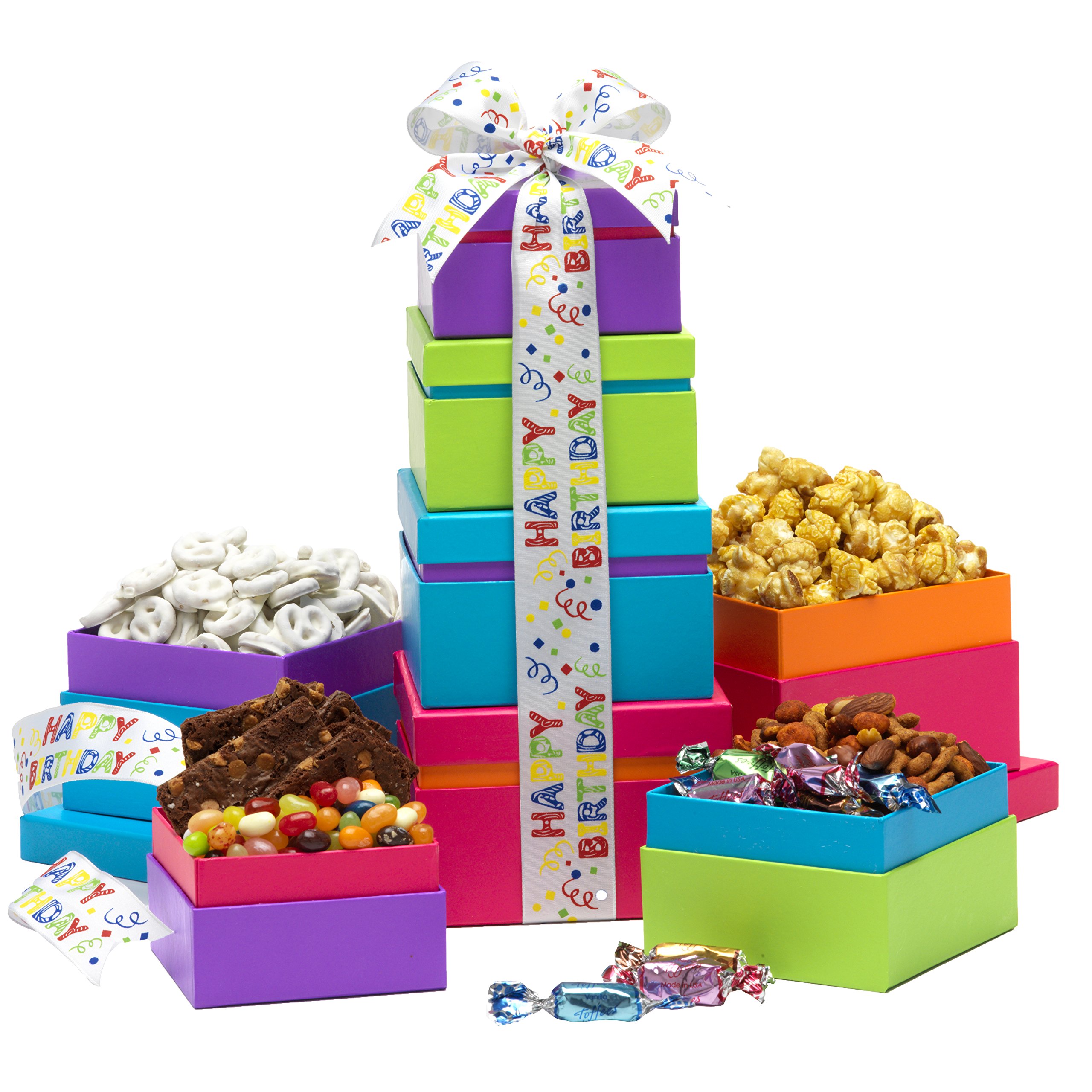 Each beautiful box contains gourmet snacks like handcrafted popcorn, dark chocolate covered pretzels, and rich dark chocolates with sea salt caramel. It displays fabulous gift boxes that sport wonderful colors of black, gold, orange, and white. Ftd has gift basket ideas for every taste and occasion. Happy birthday organic chocolate gift box.